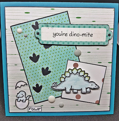 Die Karte hat die Maße 15,0 x 15,0 cm und ist in blau gehalten. Verwendet habe ich ein Stempelset von Lawn Fawn (glaube ich zumindest).
