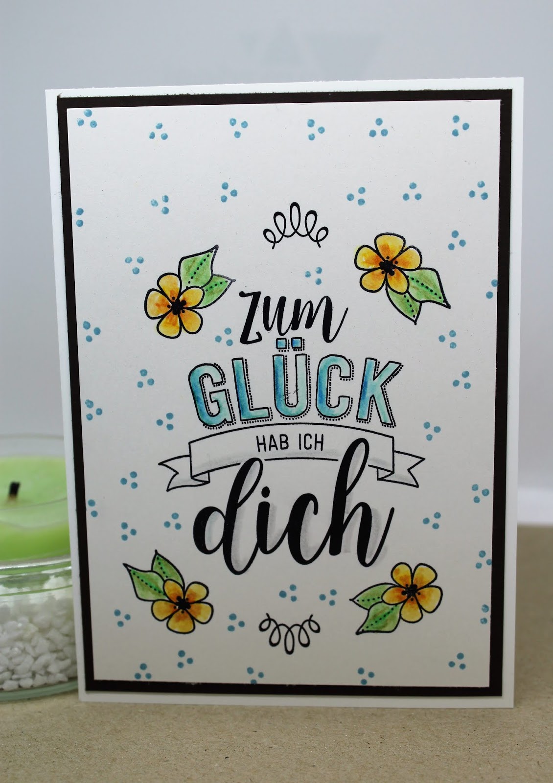 Die Karte ist mal nur gestempelt und coloriert, aber ich finde diese Karte und dieser tolle Spruch brauchen einfach nicht mehr Dekoration.