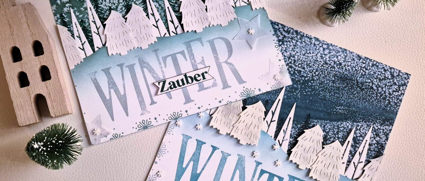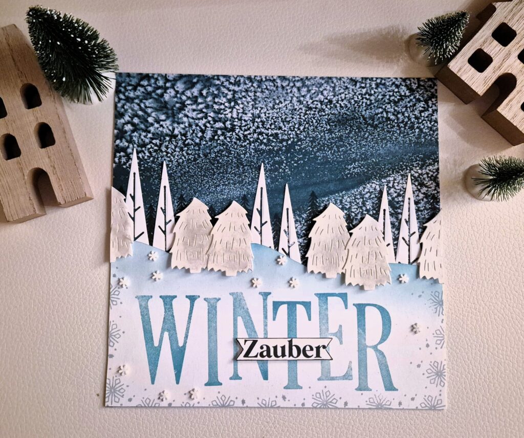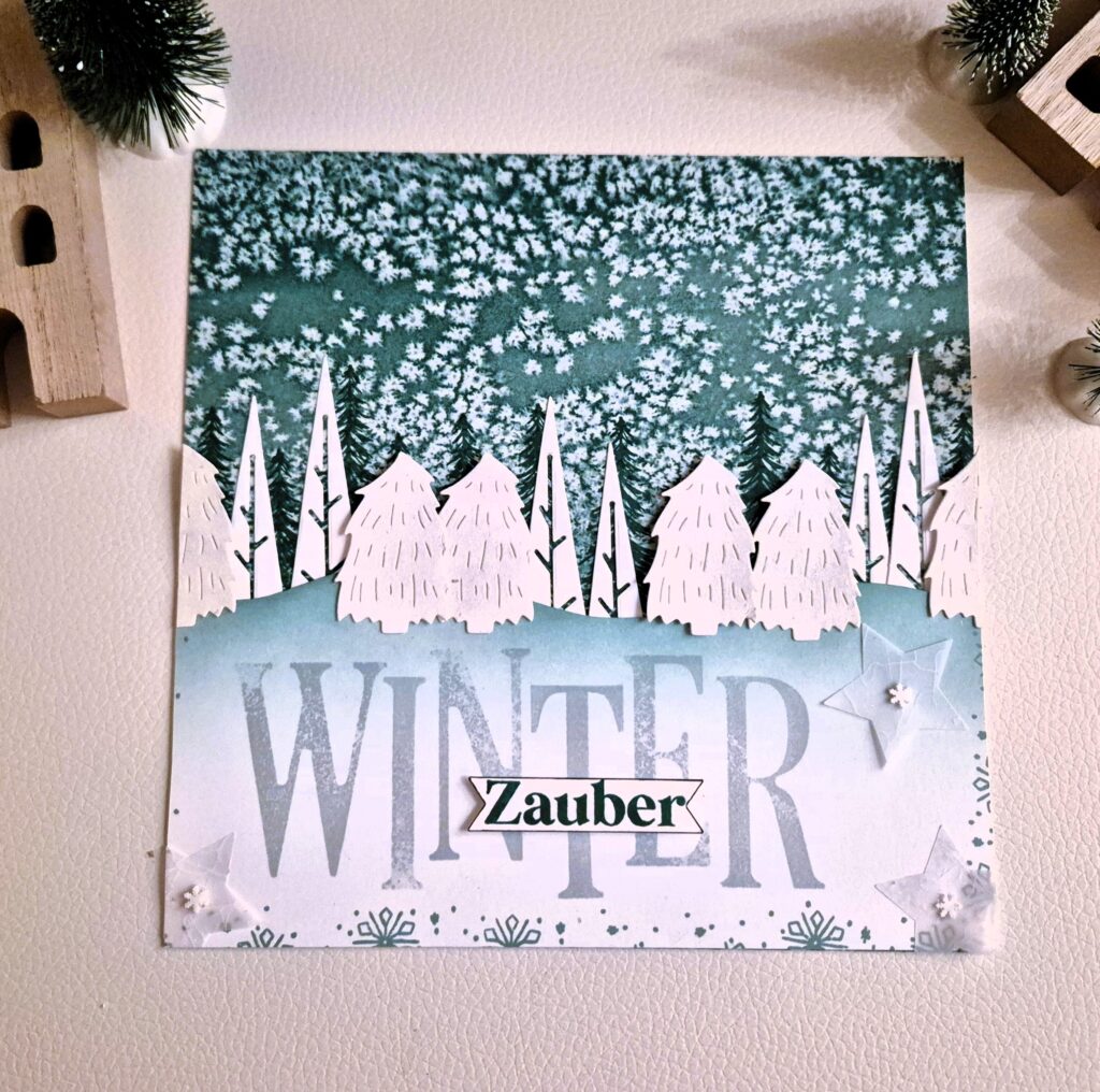 Ich wusste, dass ich im Hintergrund sehr gerne das wunderschöne Designerpapier „Elegante Tannen & Flocken“ verwenden wollte und eine kleine Winterlandschaft mit den tollen Bäumen aus dem Produktpaket „Festive Friends“ hatte ich vor meinem geistigen Auge. Diese und weitere tolle Produkte kannst du in meinem Online-Shop von Stampin`Up!® entdecken und shoppen – klick